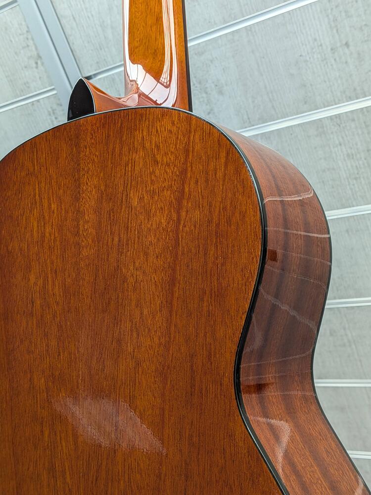 Tavola in Abete Sitka – fasce e fondo in Sapele – tastiera e ponte in Palissandro – meccaniche cromate – doppio binding (bordatura) – finitura lucida – colore Natural – borsa imbottita inclusa.