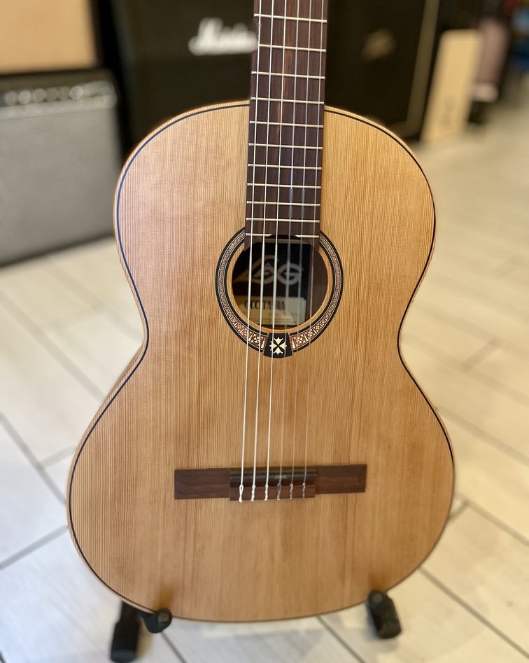 Corpo Classical – Top massello in cedro rosso – Fondo e fasce in khaya laminato – Hardware Black Satin – Finitura satinata – Ponte in Brownwood (pinus radiata) – Manico in Khaya – Tastiera in Brownwood (pinus radiata) – Radius Flat – Scala 650 mm – Capotasto e selletta in Graphite – Meccaniche Classical