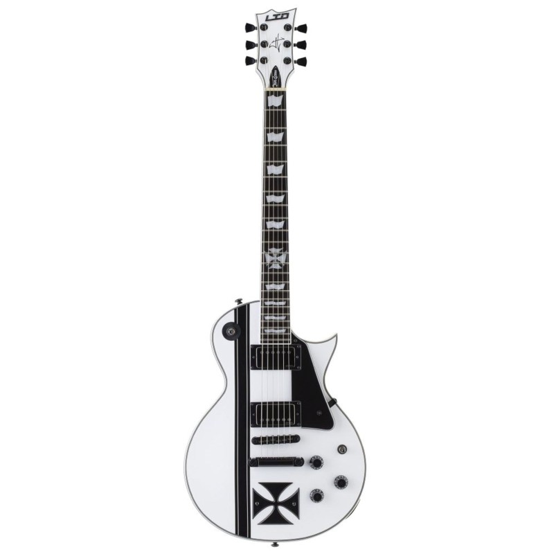 Costruzione set-in – Scala 24.75” – Corpo in Mogano con top in Acero – Manico in Mogano 3pz con profilo “Thin U” – Tastiera in Ebano con 22 tasti extra jumbo – Radius 14” – Capotasto da 42 mm – Hardware nero – Ponte Tonepros Locking TOM & Tailpiece – Meccaniche LTD Locking – Pickup EMG HET SET – Corde D’Addario XL110 (.010/.013/.017/.026/.036/.046) – Astuccio Form Fit EC incluso