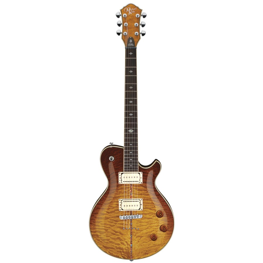 Corpo in mogano – top in acero marezzato – binding crema – manico incollato in mogano – tastiera in pauferro con radius 12” – scala 24,75” – 22 tasti medium jumbo – pickup Seymour Duncan P-Rails – meccaniche Grover – hardware cromato – corde D’Addario EXL120 (.009-.042)