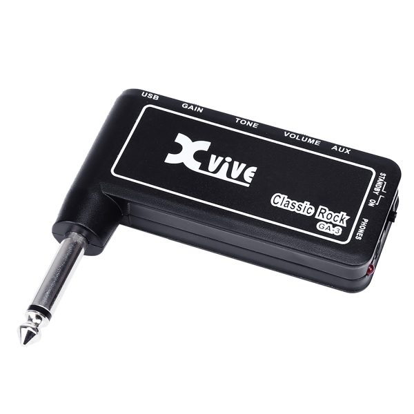 Controlli di Gain, Tone, Volume – Uscita cuffie Jack 3,5mm stereo – Ingresso AUX Jack 3,5mm stereo – Switch Standby/On – Batteria al Litio integrata – Ricarica tramite presa Mini USB – Cavo Mini USB incluso