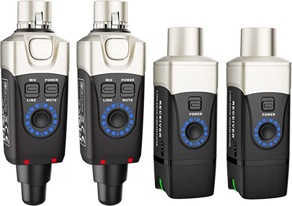 Sistema con due trasmettitori e due ricevitori U3 per connessione stereo wireless tra mixer e speaker.
